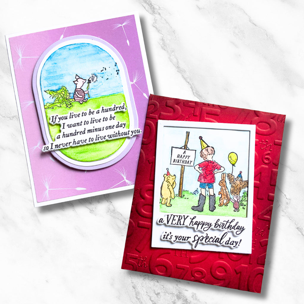 Perfect for use with the Spellbinders BetterPress Letterpress System, each plate creates crisp, professional-level impressions when inked and pressed onto BetterPress Cotton Card Panels. Whether you're crafting birthday invitations or heartfelt greetings, these plates pair perfectly with coordinating items in the Classic Pooh Birthday Collection by Simple Stories. Add your favorite coloring techniques or hot foil for a magical finish that celebrates life’s sweetest moments.