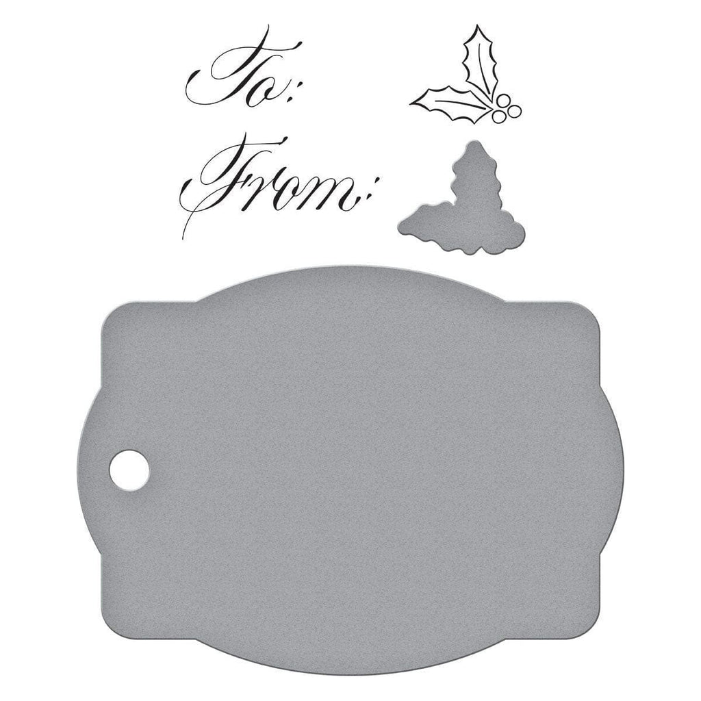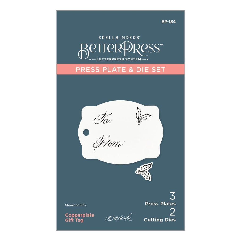 Copperplate Gift Tag Press Plate & Die Set is part of the Copperplate Holiday Sentiments Collection by Paul Antonio. The two plates press the words, To: and From:, in an elegant Copperplate script. The third plate presses a sweet holly design. Together with the tag and holly outline dies, you can create an amazing gift tag for the holidays. Ink the plates with the BetterPress Ink to be pressed against the BetterPress Cotton Card Panel and Sheets for a crisp letterpress design.