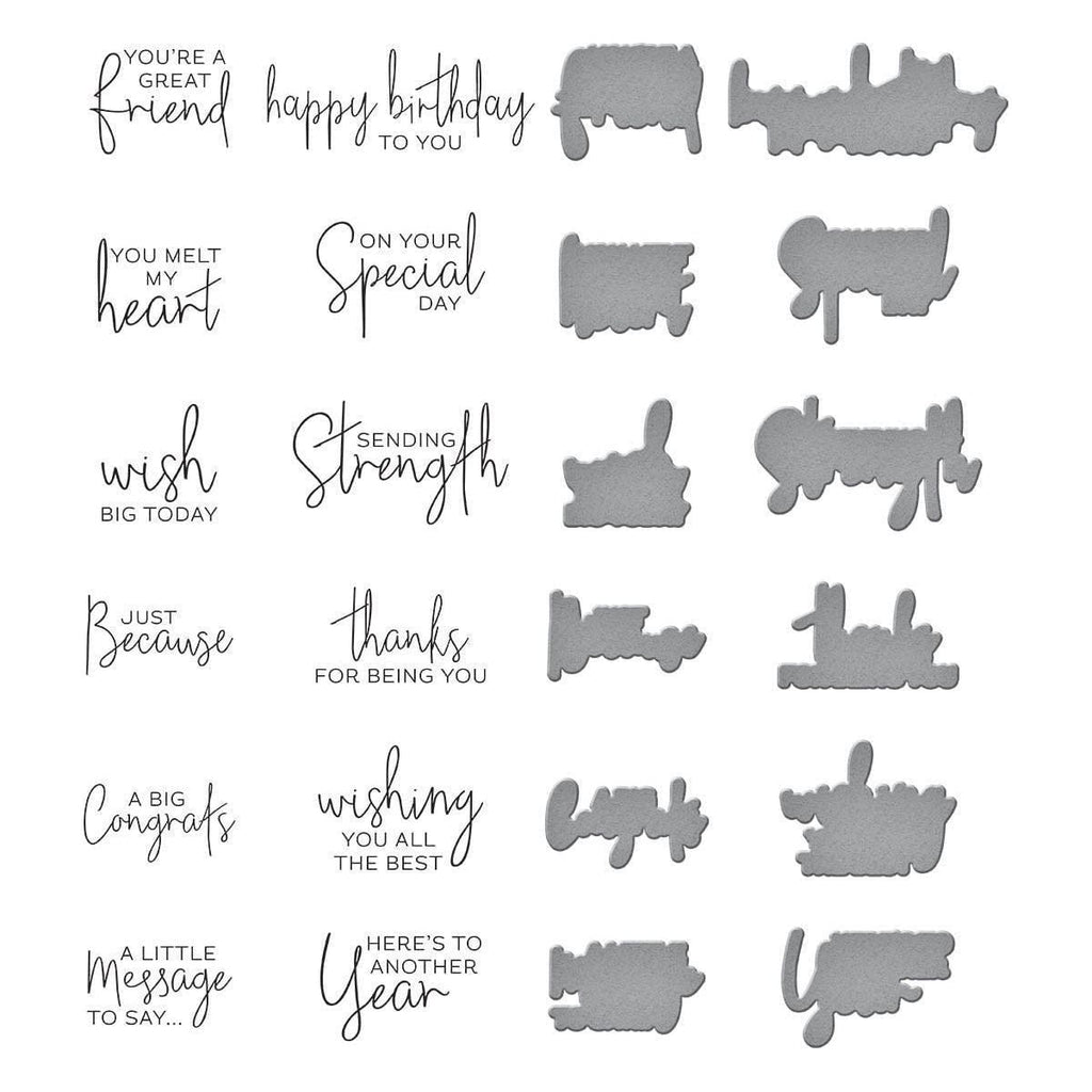 A Little Message Sentiments Press Plate & Die Set is part of the BetterPress Collection by Spellbinders. If you are looking for a mix font of sentiments, try this set of 12 press plates and matching thin metal cutting dies! These encouraging phrases are a wonderful addition to your cardmaking stash. Ink the plate with the BetterPress Ink to be pressed against the BetterPress Cotton Card Panel and Sheets to create a crisp letterpress design.