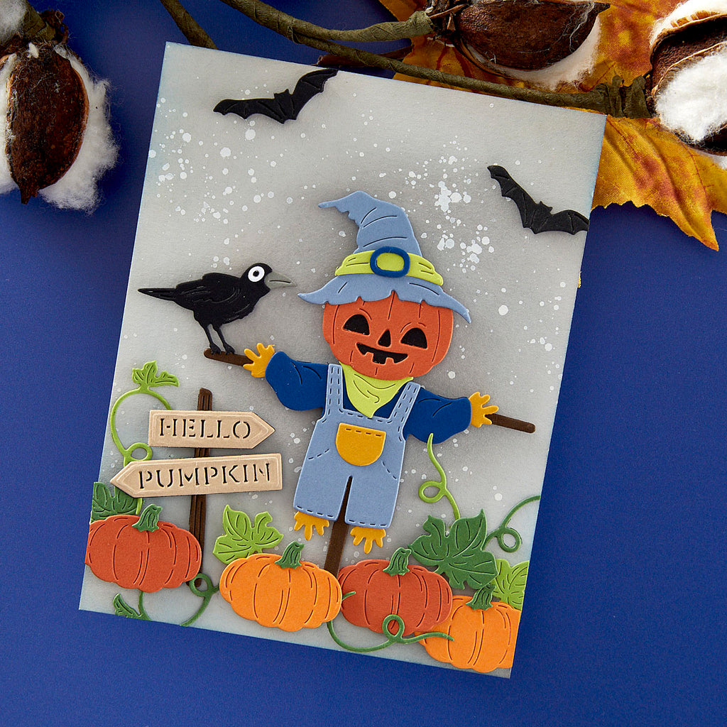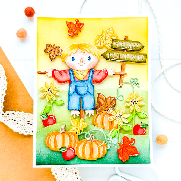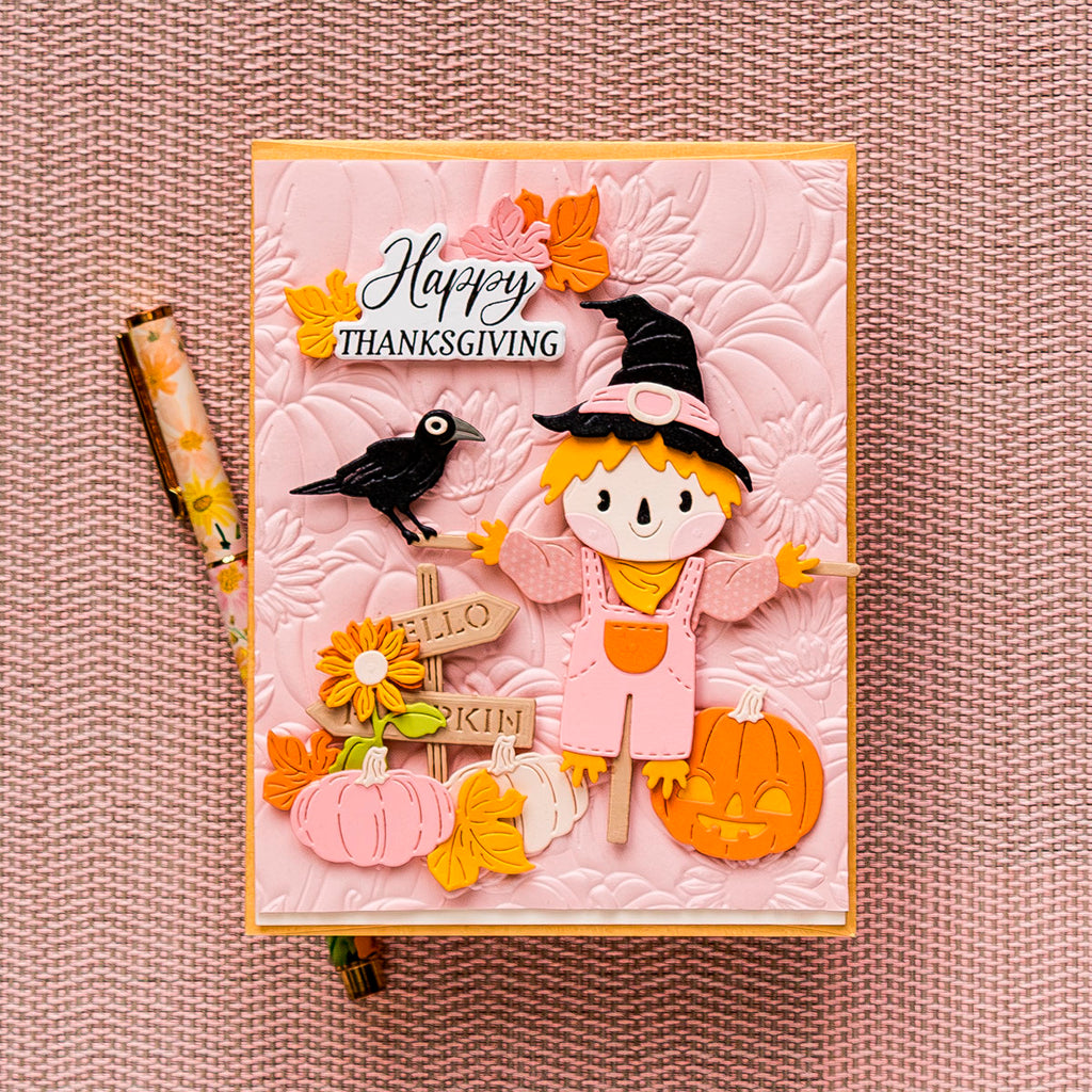 Autumn Scare Crow- Small Die of the Month! This 24-piece Die Set released September 2024 to our Small Die of the Month Club includes a variety of sentiments. Use to create cards, décor, gift card holder, gifts, and more!