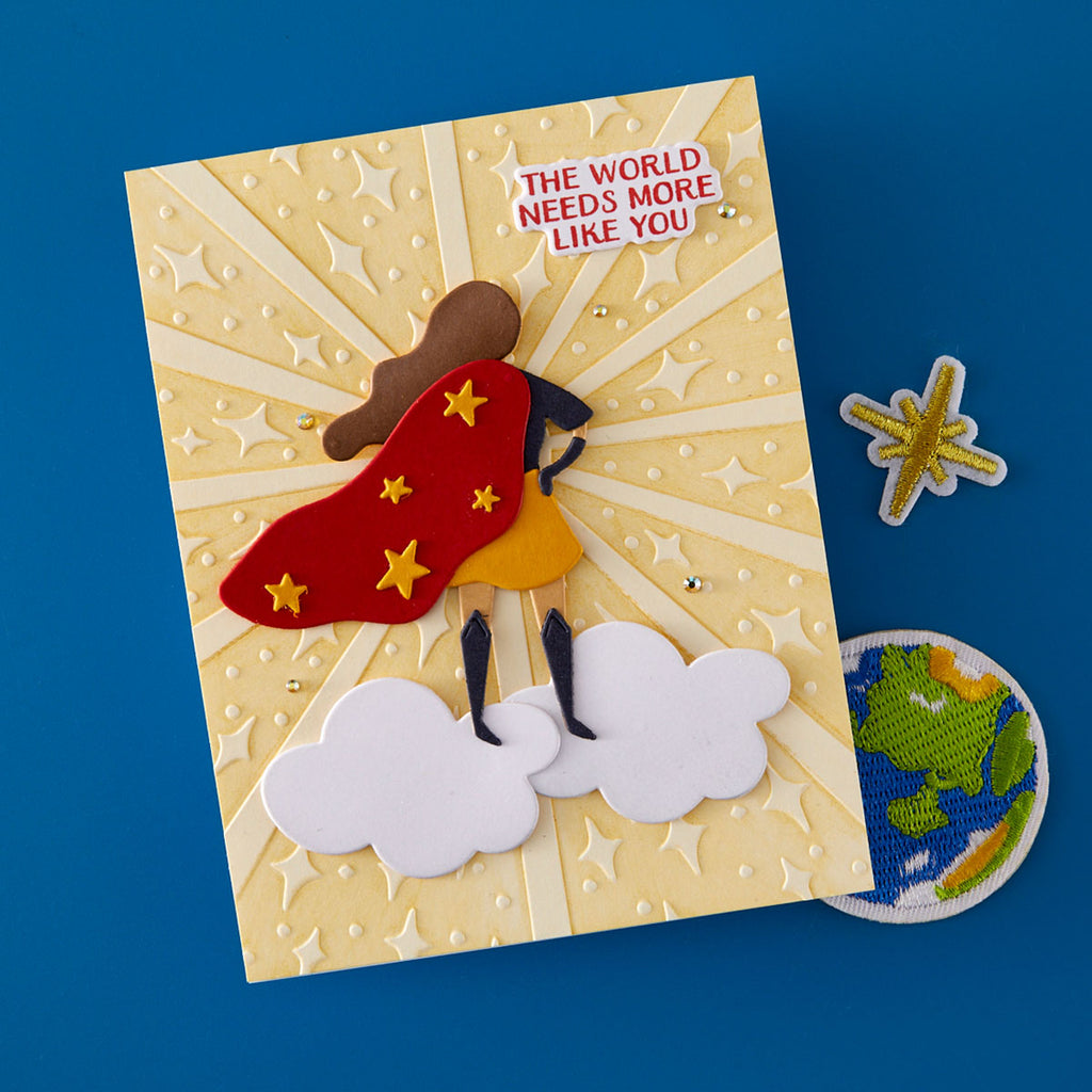 This month's "Solar Flare" embossing folder is perfect for making cards, decor, and more.