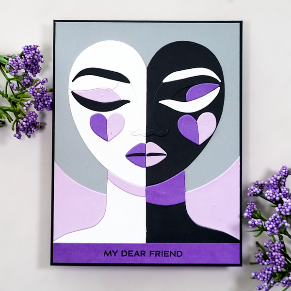Sensory Facets Etched Dies are part of the All My Senses Collection by Jaycee Gaspar. The set of 20 thin metal cutting dies created a bold face design with a heart-shaped head and two heart-shaped cheeks. The face is made up of many angled pieces to give her many facets of personality! The finished design measures approximately 5.50 x 4.25 in./14.00 x 10.80 cm.