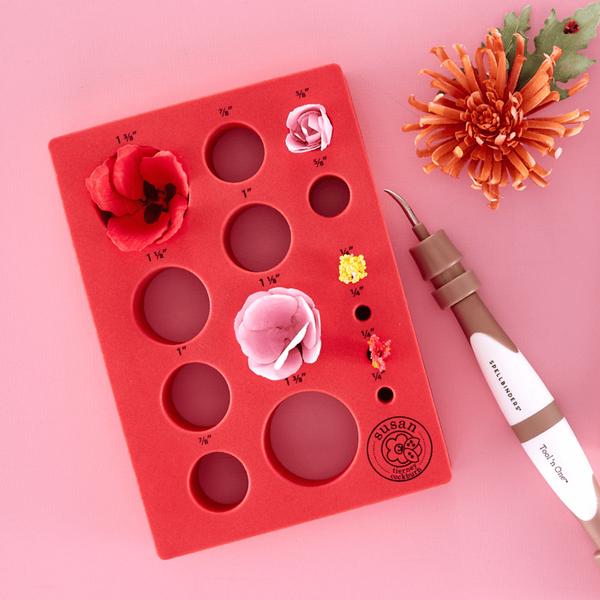 Susan’s Garden Flower Mold Tray is part of the Victorian Garden Collection by Susan Tierney-Cockburn. The mold helps buds and stamens to dry and maintain their shapes. Many sizes provided in the tray to fit all the flowers in your paper garden. Perfect to use with T-021 Susan’s Garden Ultimate Tool Kit to make your paper bloom come to life!