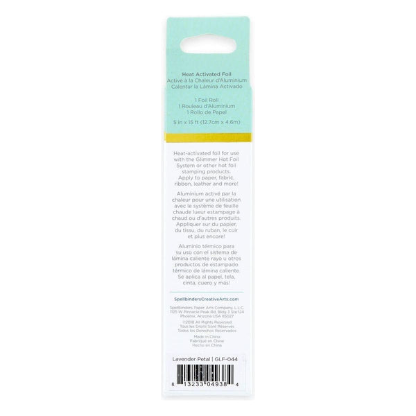 Glimmer Hot Foil Roll – Lavender Petal comes in a 15-foot roll and a width of five-inches.