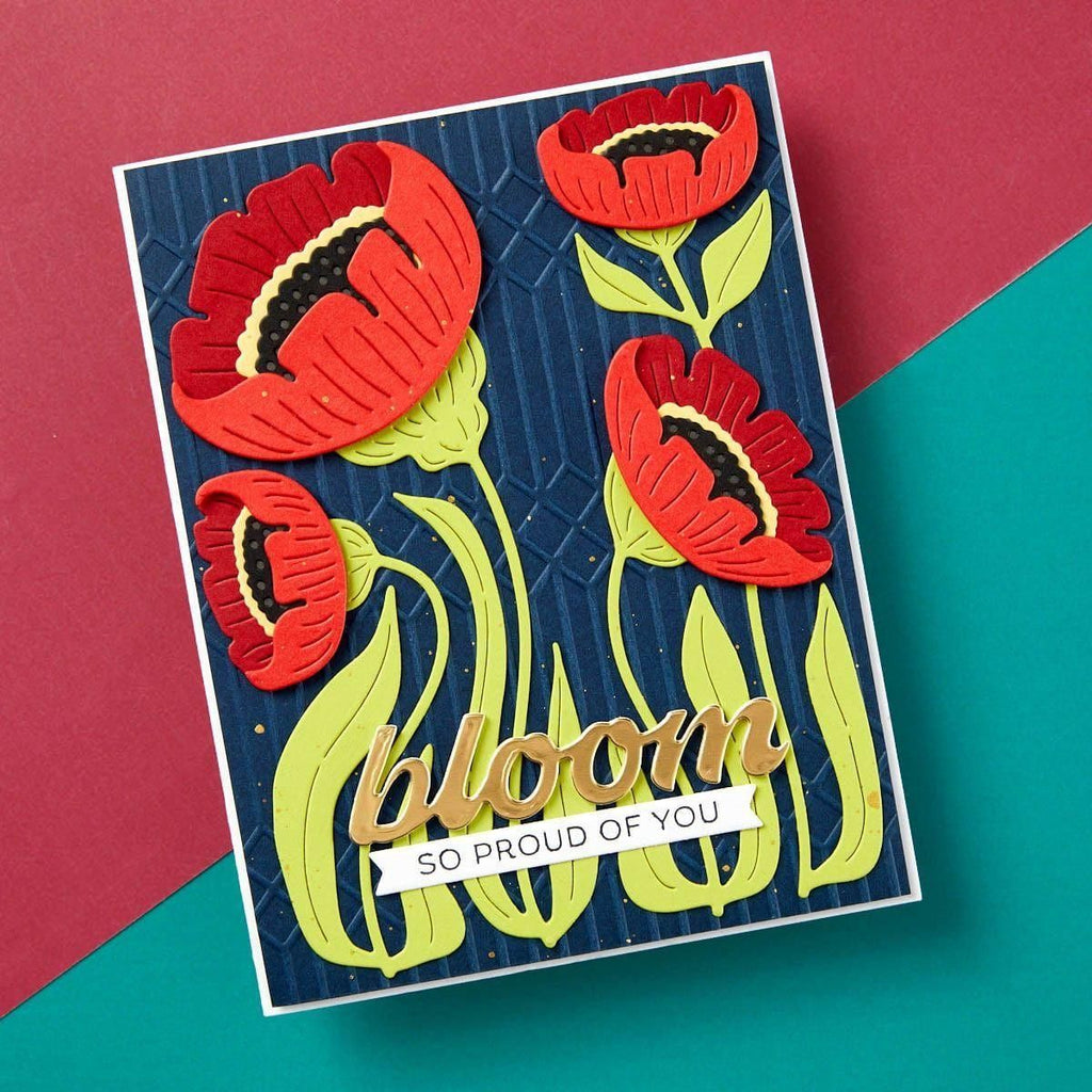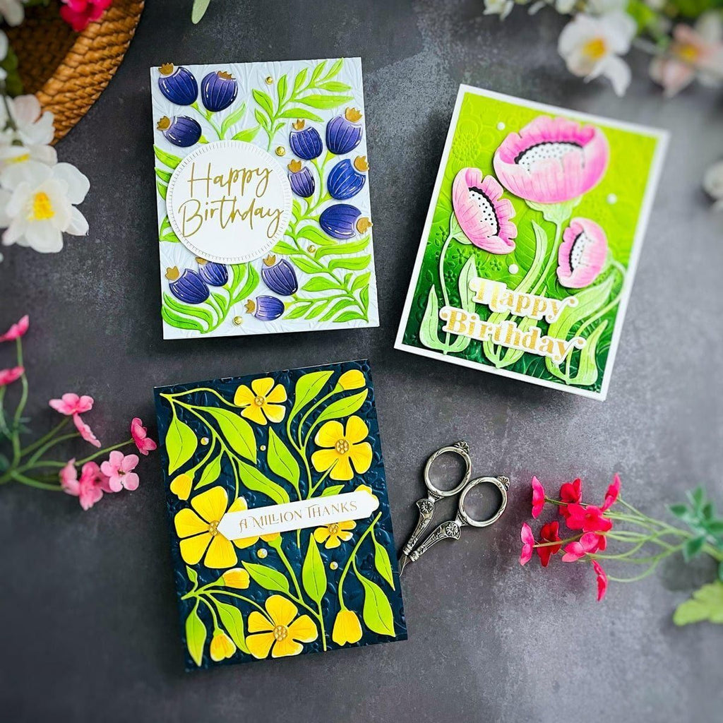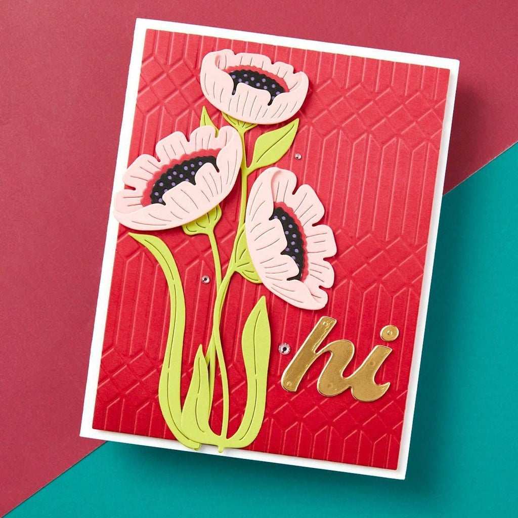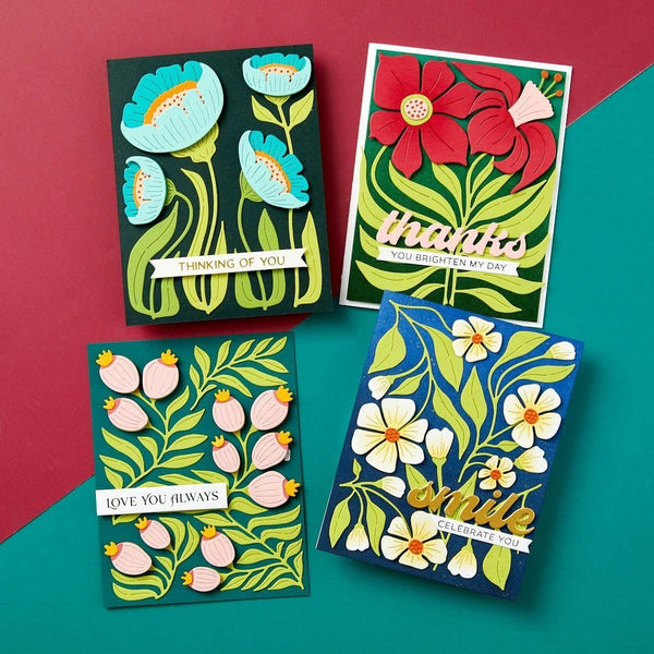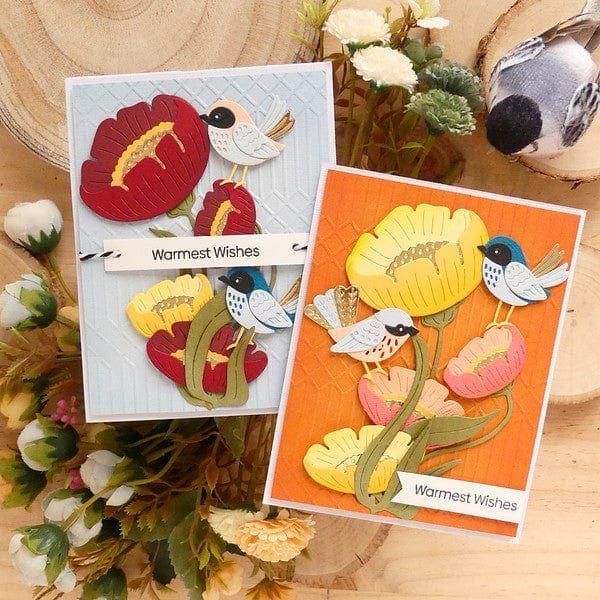Fresh Picked Die Bundle is part of the Fresh Picked Collection and includes all five etched die sets from this collection. S4-1329 Fresh Picked Sentiments Etched Dies, S5-617 Fresh Picked Daffodils Etched Dies, S6-226 Fresh Picked Buttercups Etched Dies, S6-227 Fresh Picked Berries Etched Dies and S6-228 Fresh Picked Anemones Etched Dies. Mix and match bloom designs to create a hip and colorful garden. Pair them with a contemporary background like SES-056 Columns Embossing Folder (sold separately) for texture and interest.