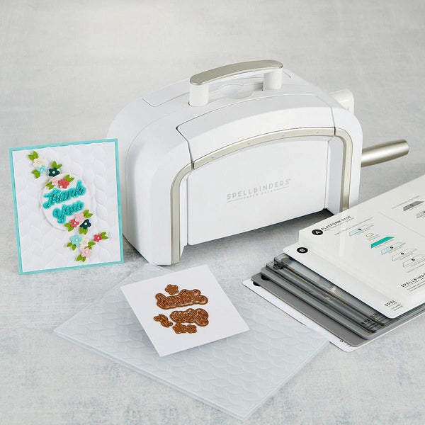 With a new glossy brushed platinum trim, the machine makes for a beautiful addition to any craft space. It also includes an exclusive 3D folder and die set to start creating right away!