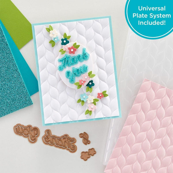 The included Universal Plate System increases the versatility and ease of die cutting by offering plates that work with virtually all products on the market, such as etched dies, steel rule dies, 2D embossing folders, and 3D embossing folders.