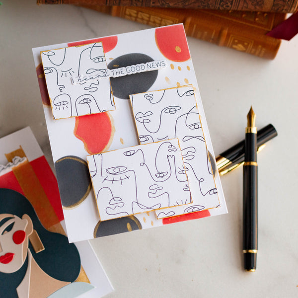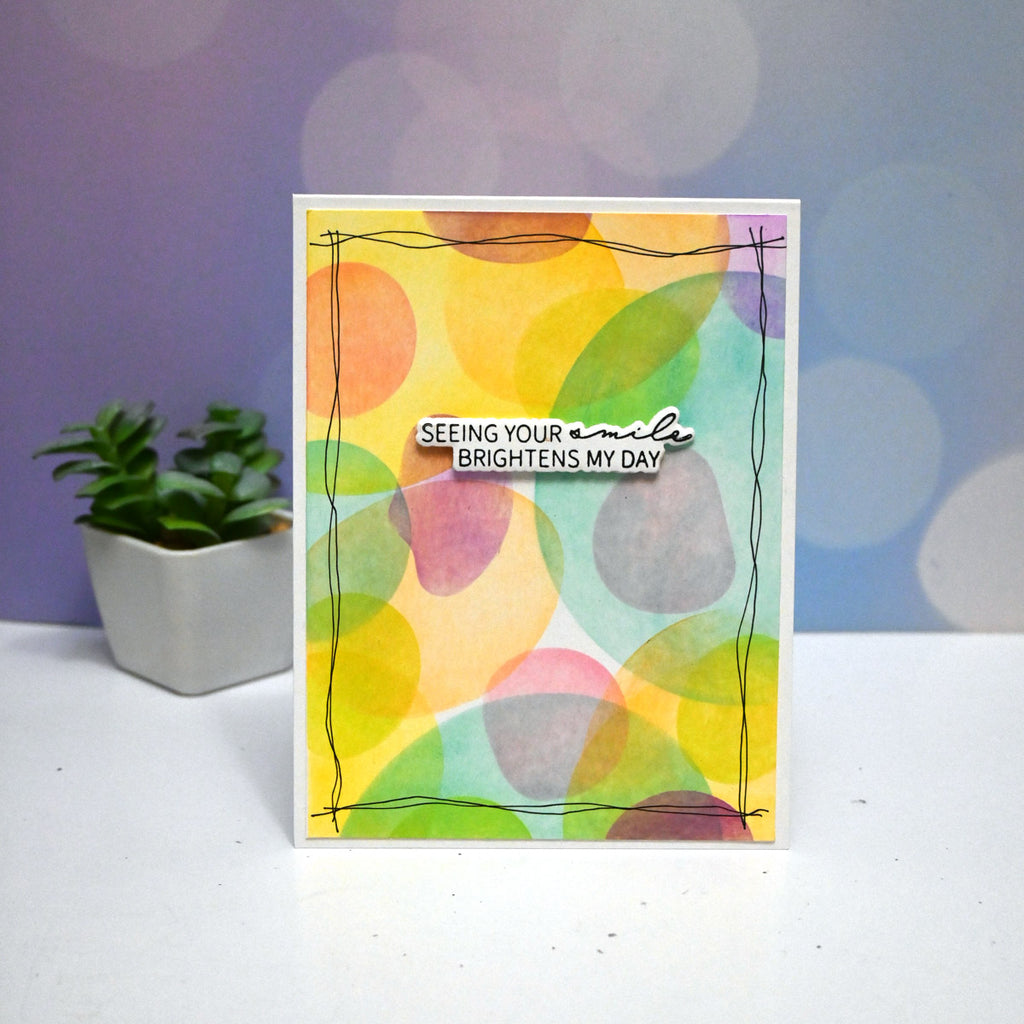 Stencil the design by following the numbered stencil sheets to create a colorful card pattern.