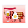 Let’s Do Brunch brings together an irresistible cast of breakfast favorites—each one full of charm and personality. Crisp bacon curls, a sunny-side egg glows with warmth, a bubbly mimosa lifts the mood, and a cheerful waffle anchors the group with cozy, gridded texture. Thoughtfully designed layers allow each character to come to life with expressive faces, playful posture, and delightful little accents like tiny cups and waving banners.