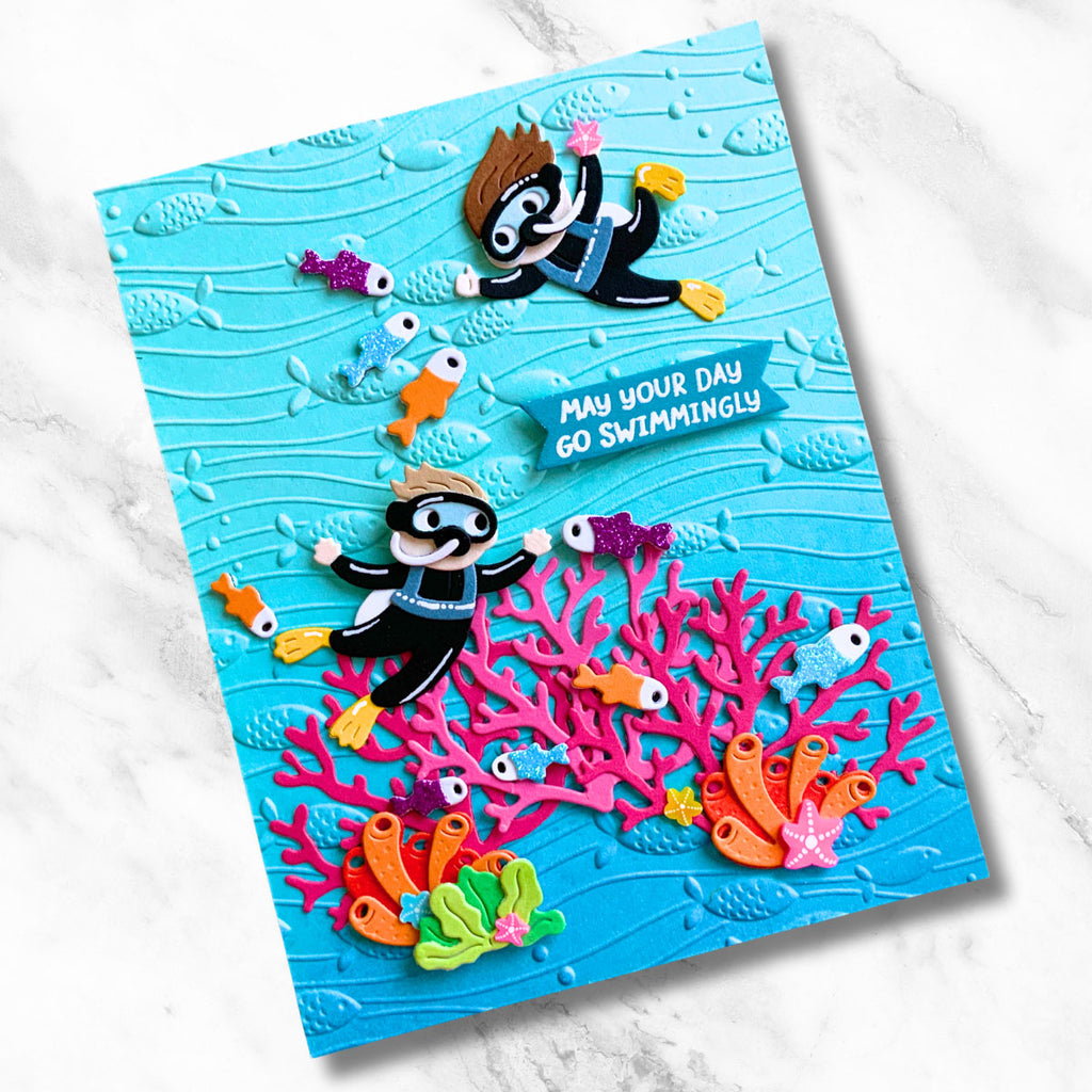 Flow into creativity with the Underwater Wave 3D Embossing Folder of the Month! This richly detailed design features schools of fish swimming gracefully along flowing waves, perfect for adding texture and movement to your card fronts and mixed media projects. It’s a background that instantly brings an ocean-inspired story to life.