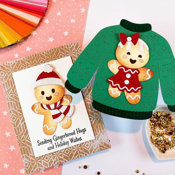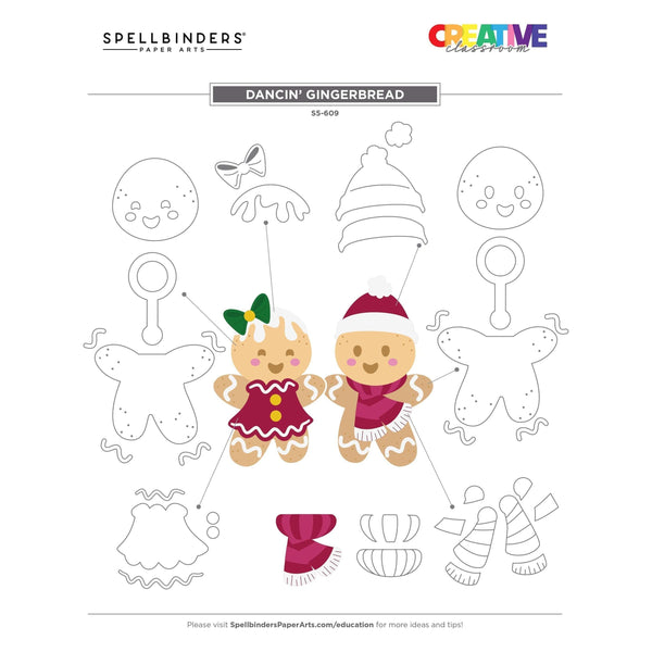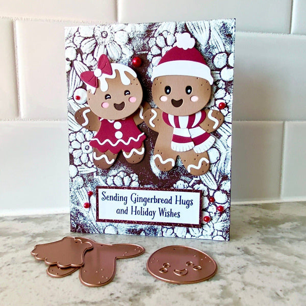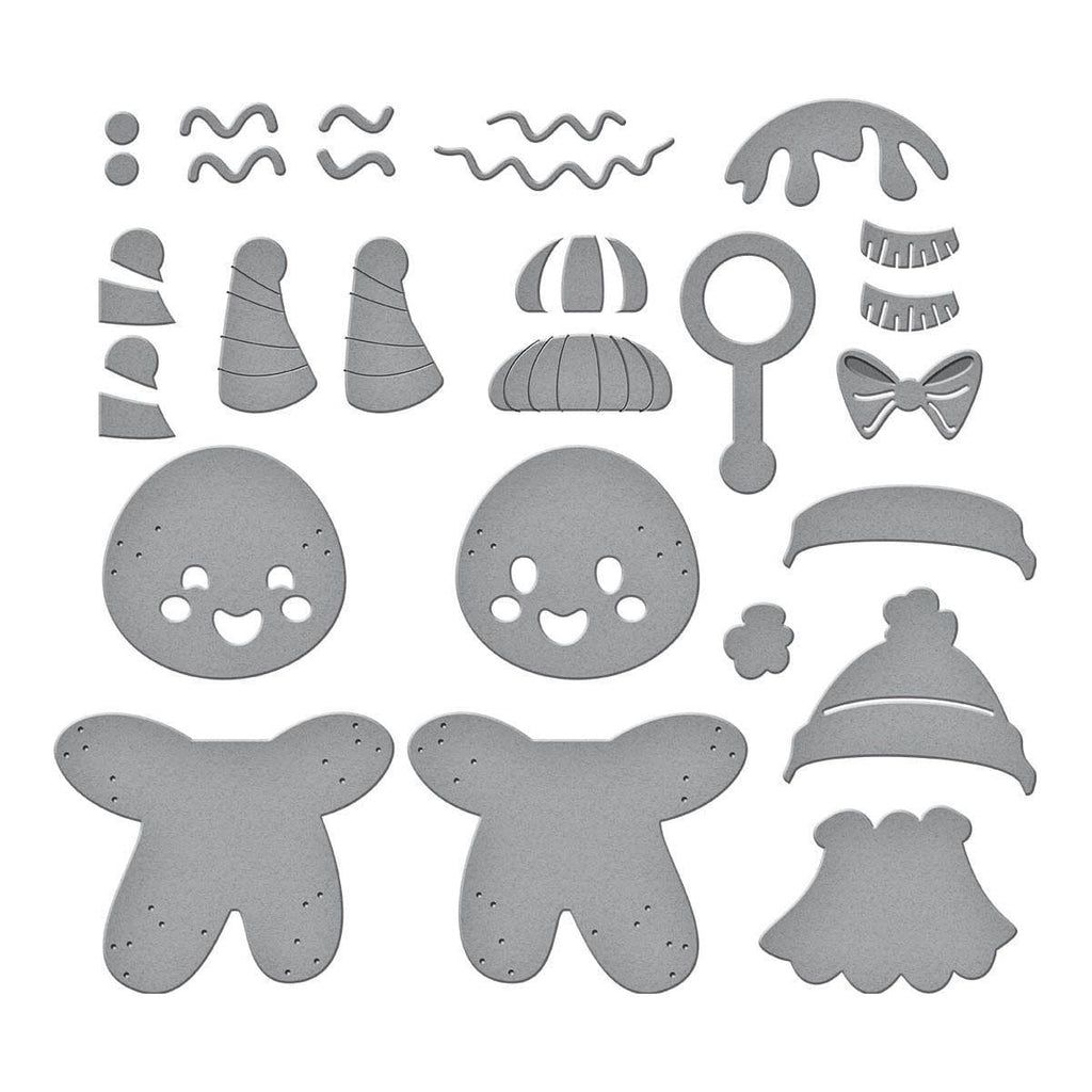 Dancin' Gingerbread Etched Dies are part of the Dancin' Christmas Collection and includes a set of 11 thin metal cutting dies to assemble these adorable gingerbread men. So many details to make them whimsical and they come to life with their moving bodies too! The assembled Gingerbread Boy measures 3.50 x 2.00 in./8.90 x 5.08 cm, and for the Gingerbread Girl, she measures 3.25 x 2.00 in./8.26 x 5.08 cm.
