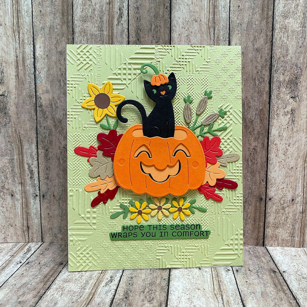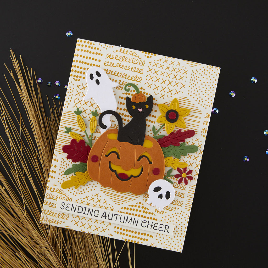 Layer the pieces for charming dimension, mix and match the accents for endless scenes, or pair them with your favorite sentiments for cozy, slightly spooky designs. Perfect for everything from sweet Halloween greetings to festive fall projects, this set captures the joyful spirit of harvest time.