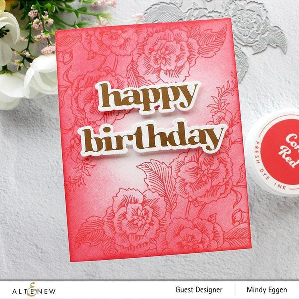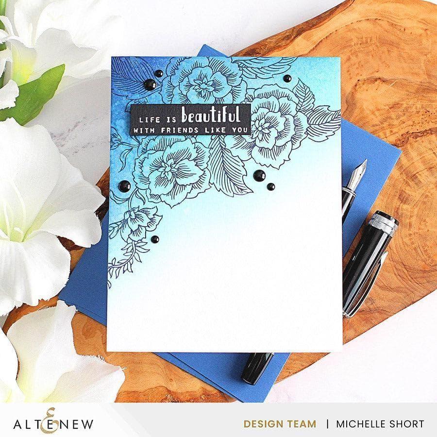 The Floral Engravings Press Plates is a stellar addition to Altenew's new BetterPress Collection. This set of press plates boasts a generously sized, exquisitely detailed floral composition, accompanied by two versatile sentiments. Whether you choose to let the captivating image command the spotlight on your project or apply a lighter ink tone for a textured background, rest assured that this press plate set will leave a lasting impression.