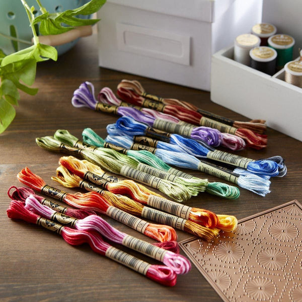 This bundle of DMC's 18 variegated 6 strand floss skeins will provide an abundance of color tones for any stitching project. Each skein is 8.7 yards of 6 strand floss, made from long staple cotton and double mercerized for a brilliant sheen. The premium thread is made up of six easily separated strands, which allows customization of thread thickness by choosing the number of strands.