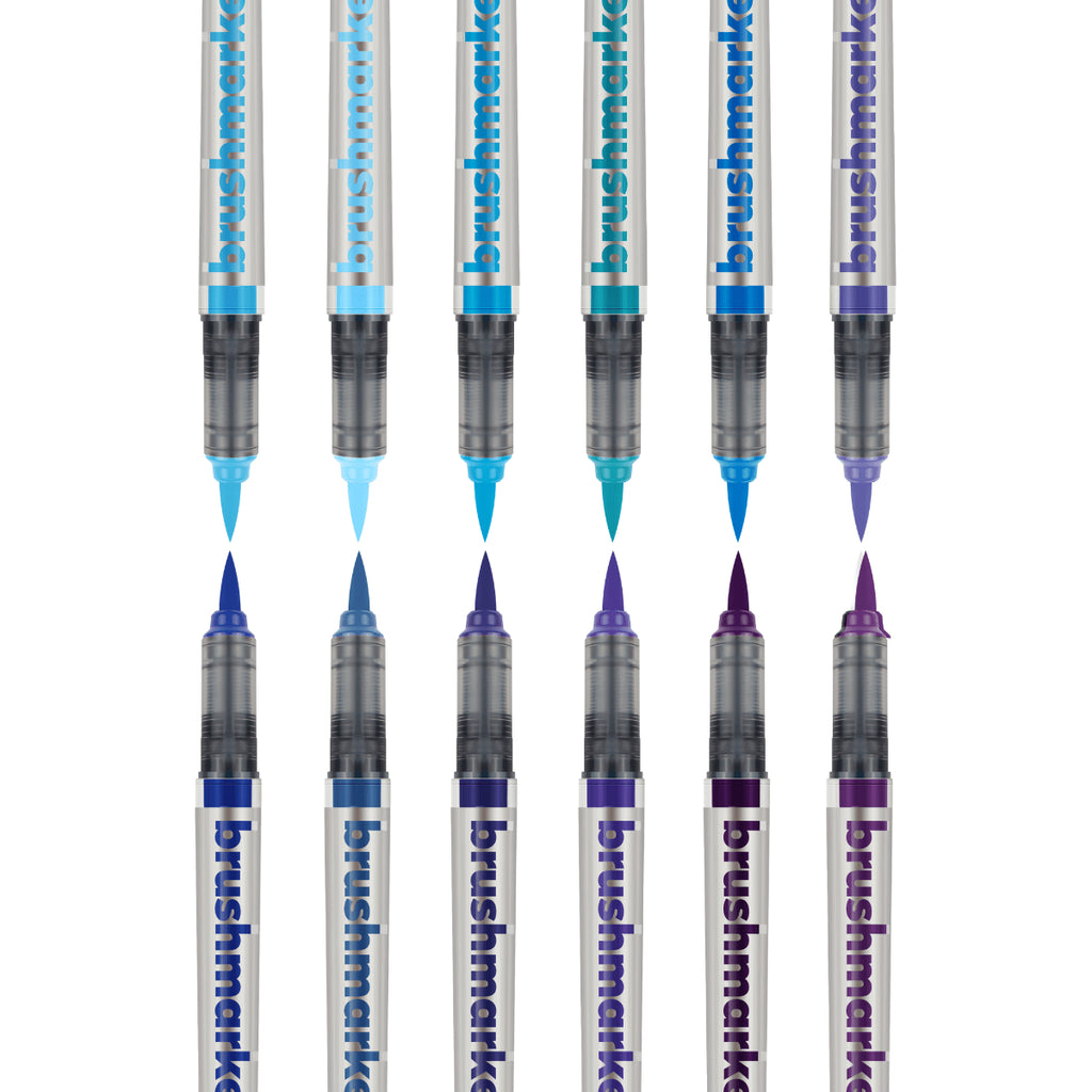 Karin Brushmarker PRO markers each contain 2.4 ml of water-based paint. Thanks to the “liquid ink” technology featured in Karin markers, the ink remains consistent in quality and vibrancy until the last drop. They are twice as efficient as traditional filter markers. In addition, they are equipped with a Japanese super durable and flexible nylon tip. They contain non-toxic paints with intense dye-based color. The colors can be mixed and lightened, plus tonal transitions can be achieved by contacting the ends of two different marker tips. Store vertically.