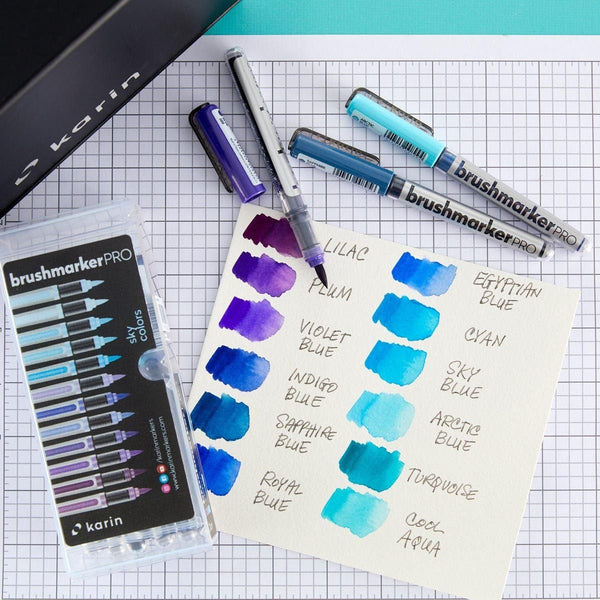 Karin Brushmarker PRO 12pc Sky Set - Your Ultimate Creative Companion! Unleash your artistic potential with the all-new Karin Brushmarker PRO 12pc Sky Set. This comprehensive set has been carefully curated to elevate your creative experience and bring your ideas to life like never before. Whether you're a professional illustrator, an enthusiastic hobbyist, or just starting on your creative journey, this set has everything you need to achieve stunning results with ease and precision.