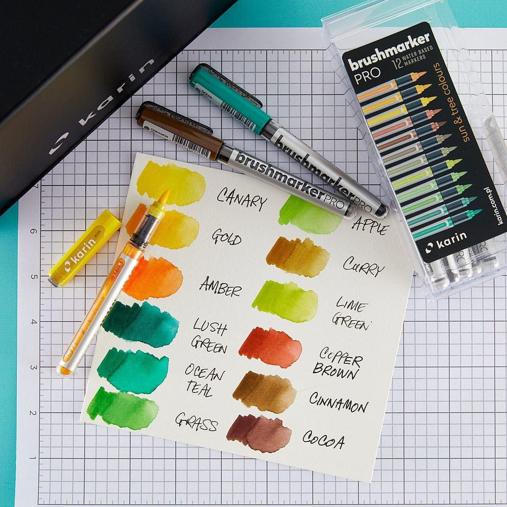 Karin Brushmarker PRO 12pc Sun and Tree Set - Your Ultimate Creative Companion! Unleash your artistic potential with the all-new Karin Brushmarker PRO 12pc Sun and Tree Set. This comprehensive set has been carefully curated to elevate your creative experience and bring your ideas to life like never before. Whether you're a professional illustrator, an enthusiastic hobbyist, or just starting on your creative journey, this set has everything you need to achieve stunning results with ease and precision.
