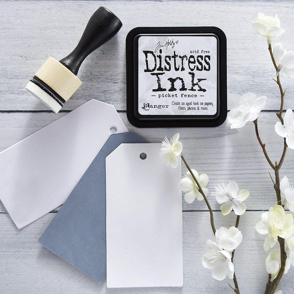 Ranger - Picket Fence Distress Ink Pad is the perfect white pigment ink with Distress Ink formulation. Water-based and non toxic. Ink pad is approximately 3 x 3 inches