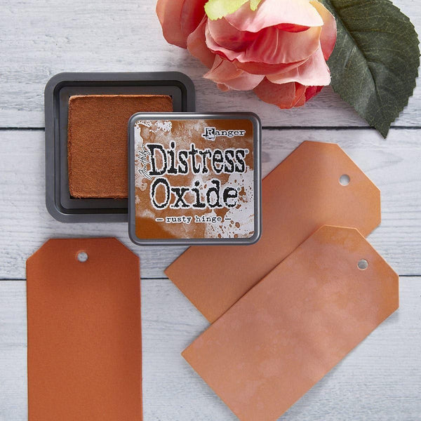 Ranger - Rusty Hinge Distress Oxide Ink Pad is a Tim Holtz Distress Oxide Ink Pads that is water-reactive dye & pigment ink fusion that creates an oxidized effect when sprayed with water. Use with stamps, stencils, and direct to surface. Blend using ink blending tools.
