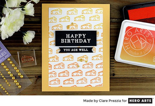 Hero Arts - Ombré Butter Bar to Orange Soda Ink Pad The Ombré Butter Bar to Orange Soda Ink Pad offers a spectrum of three shades of orange in one raised pad. Use for a gradation of color in each stamping; by placing your stamp in different positions on the pad you can emphasize different color mixes. Our Ombrés come in Reactive, Dye, and metallic pigment varieties. Store ink pads flat in order to prevent colors from running together. They are North American made, acid-free, archival, and quick drying.