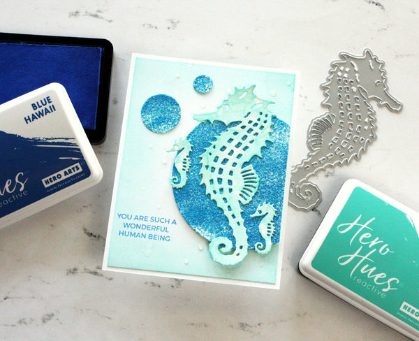 Let your creativity take a tropical turn with the Hero Hues Reactive Ink in Blue Hawaii. This rich, ocean-deep blue evokes the vibrant hues of island skies and rolling surf—ideal for stamping bold sentiments, layering scenes, and blending seamless backgrounds.