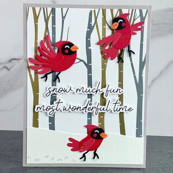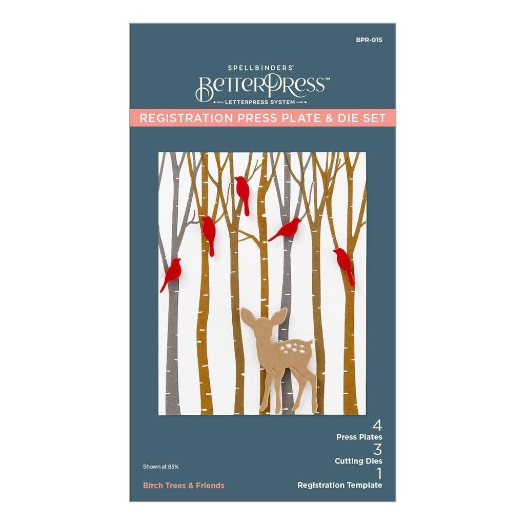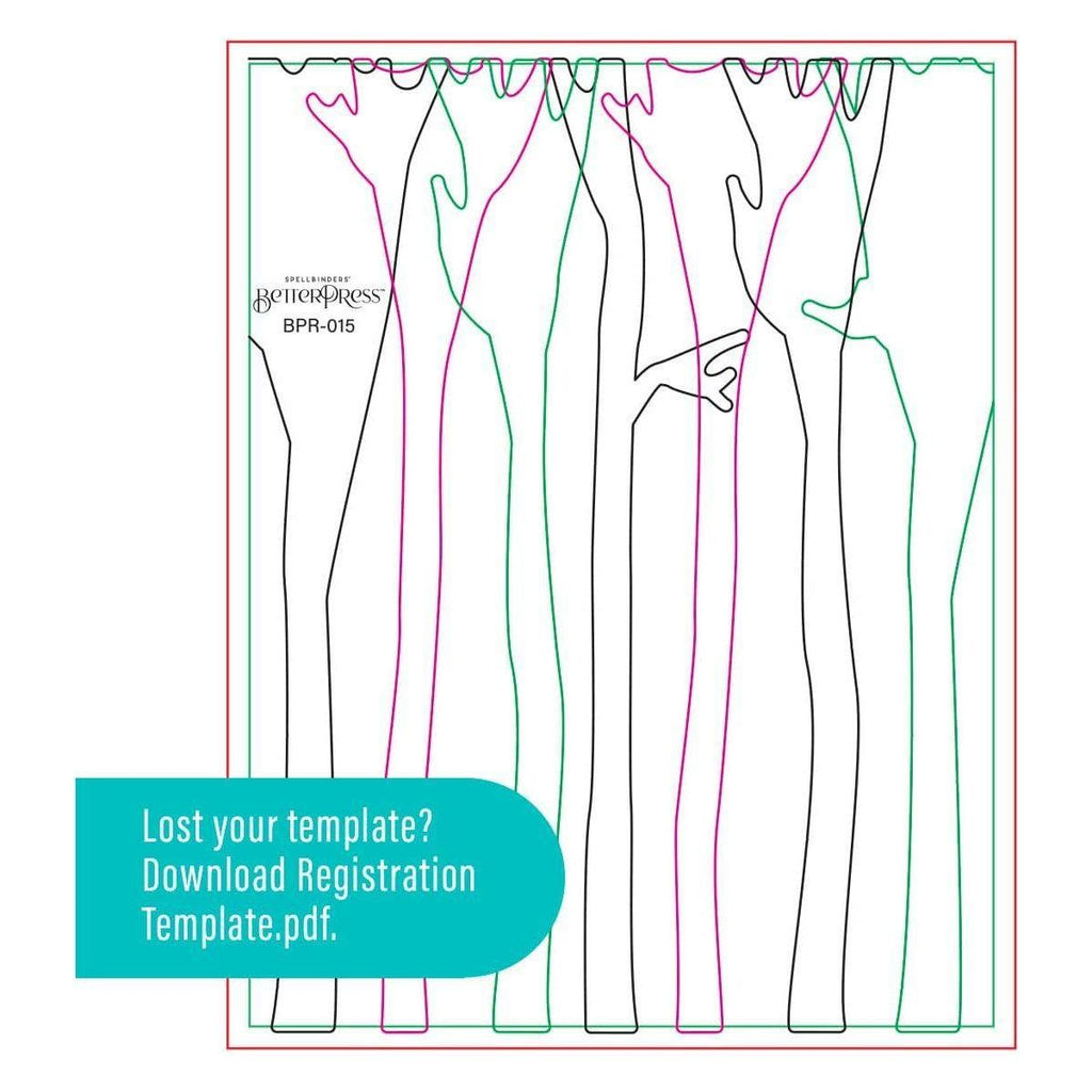 Birch Trees Registration Press Plates are part of the Dancin' Christmas Friends Collection. With this set of four press plates, three thin metal cutting dies and one mylar printed registration template, it creates an adorable birch tree scene! Just add all the cute die-cut shapes to finish the design. Registration Press Plate sets make creating multi-color letterpress designs simple and foolproof! Simply follow the multi-colored mylar template to layer beautiful colors onto your BetterPress paper for a stunning effect. This clever innovation enhances your letterpress abilities to the next level.