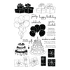 Birthday Party Stamp & Die Bundle by Simon Hurley combines HUR85980 Ranger Birthday Party Clear Stamp Set and S5-640 Birthday Party Etched Dies to create amazing dimensional birthday elements. This fun set is perfect for celebrating all the birthdays in your life! Add a towering birthday cake with colorful dripping frosting, a bright bouquet of balloons or heaps of gifts to your projects. So fun!