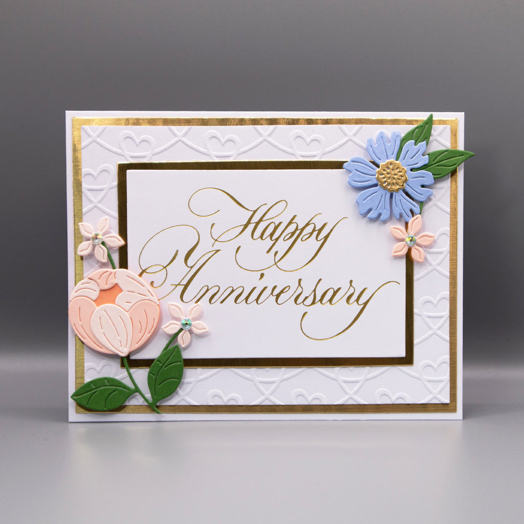 Copperplate Happy Anniversary BetterPress Plate is from the Copperplate Happy Everything Sentiments Collection by Paul Antonio. The plate impresses the sentiment, Happy Anniversary. Ink the plates with the BetterPress Ink to be pressed against the BetterPress Cotton Card Panel and Sheets for a crisp letterpress design.