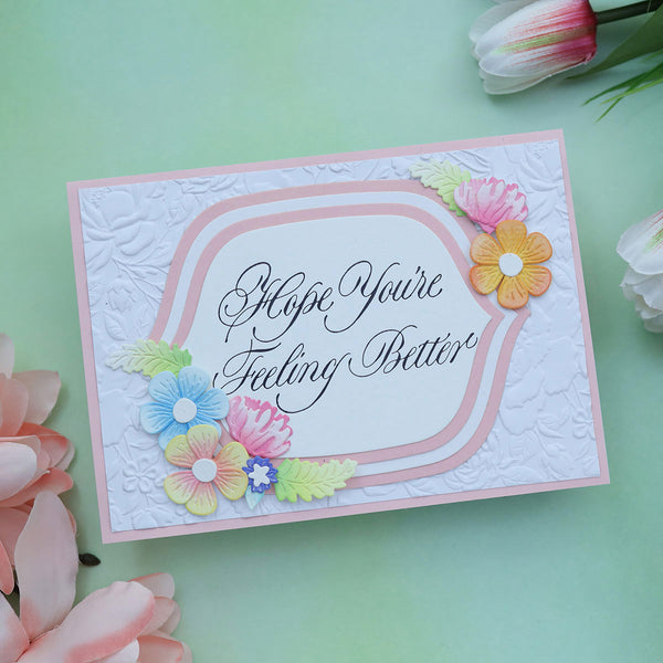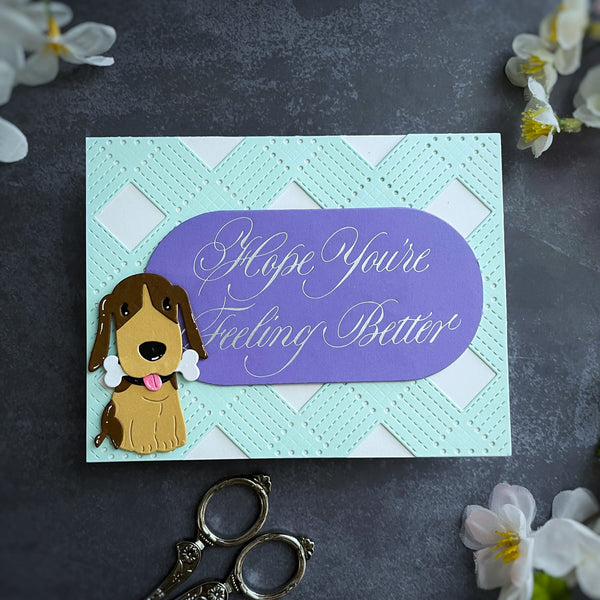 Copperplate Hope You’re Feeling Better BetterPress Plate is part of the Copperplate Happy Everything Sentiments Collection by Paul Antonio. The plate impresses the sentiment, Hope You’re Feeling Better. Ink the plates with the BetterPress Ink to be pressed against the BetterPress Cotton Card Panel and Sheets for a crisp letterpress design.