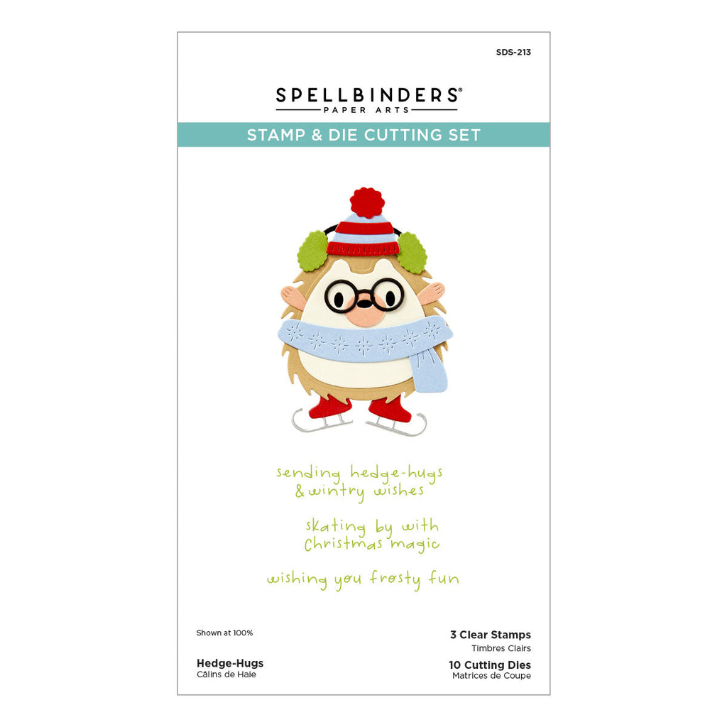 Hedge-Hugs Clear Stamp & Die Set is part of the Merry Mischief Collection. Make an adorable Hedgehog ready to go skating with the set of 10 thin metal cutting dies. Also includes accessories like hat, ear muff, scarf and more! There are three sentiment stamps perfect for the occasion: "sending hedge-hugs & wintry wishes," "skating by with Christmas magic" and "wishing you frosty fun." The finished Hedgehog measures approximately 2.40 x 3.35 in./6.10 x 9.50 cm.