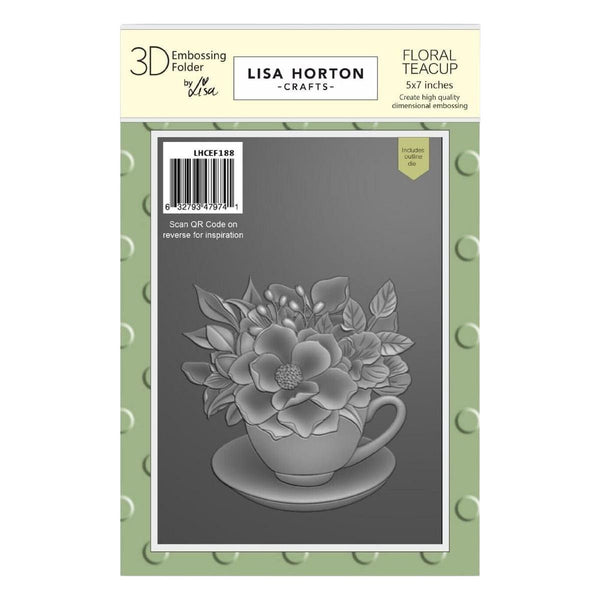 Enhance your crafting with the Lisa Horton Crafts Floral Teacup 5" x 7" Embossing Folder with Die – where intricate design meets practical convenience!