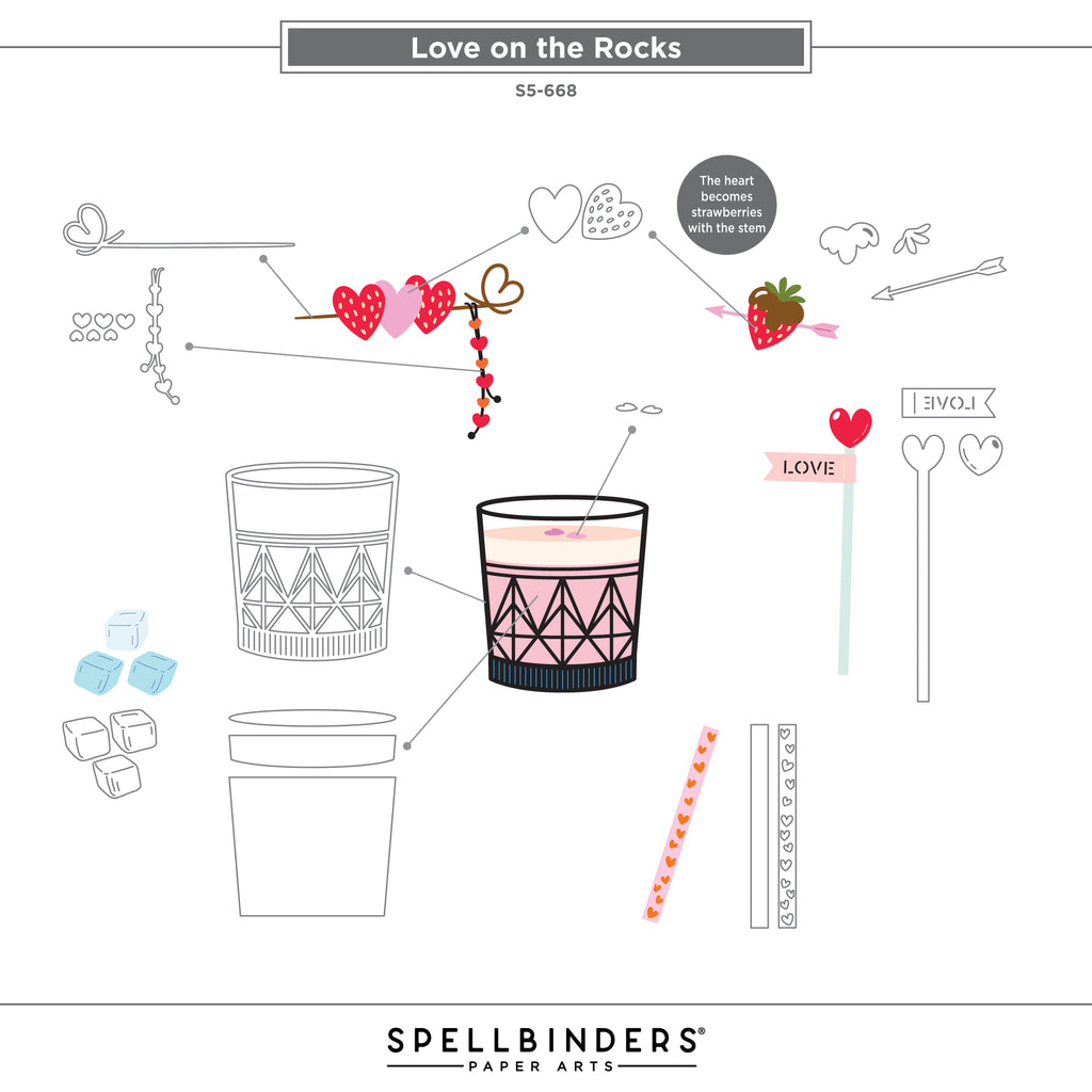 Love on the Rocks Etched Dies are part of the Love on the Rocks Collection. Create a super sweet cocktail full of wonderful accessories and accents with this set of 19 thin metal cutting dies. Everything from the high ball tumbler, straw, stir stick to many heart-shaped accents…even ice cubes are included! What a fun way to celebrate love with friends, family or a special someone!