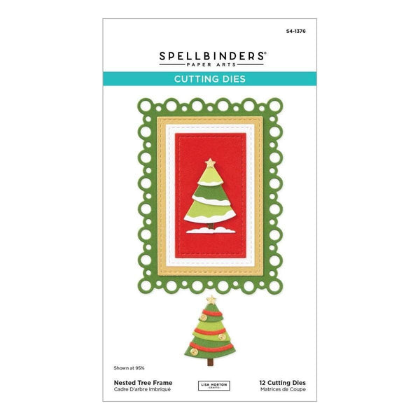 Nested Tree Frame Etched Dies is part of the Essential Holiday Collection by Lisa Horton. This set of 12 dies creates a wonderful nesting set of frames with a sweet layered pine tree in it's center. The largest frame is outlined with a fun scalloped pattern of hollow circles. The other frames in the set are bordered with an embossed stitch effect for extra interest. The star of the show is the lovely many layered tree for the center, filled with lots of options for decorating the tree... the versatility Lisa's products are known for!