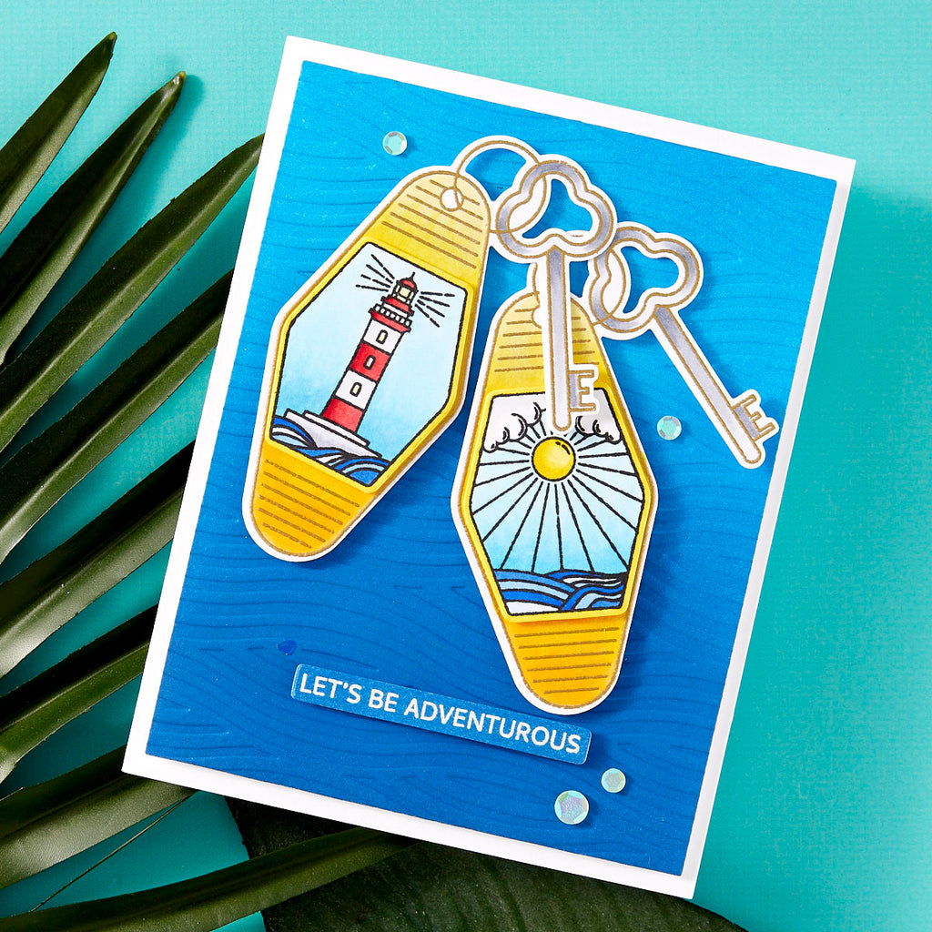 Crafted from high-quality photopolymer, the stamps deliver crisp, expressive detail, while the coordinating dies cut each element with smooth precision. Together, they invite you to build scenes that feel breezy, bright, and artfully composed—perfect for cards that capture the warmth of vacation memories and the easy charm of days spent by the water.