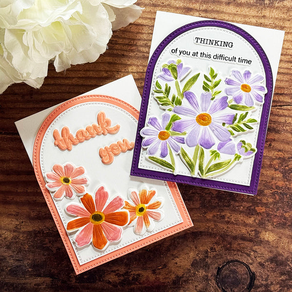 Perfect Touch Arches Etched Dies are from the On the Farm Collection. This set of seven thin metal cutting dies creates a series of nesting arches with decorative edges that give a wonderful finished look. Use them as solid shapes to anchor your design, create frames by nesting two, or make shaped cards. So many versatile design options. The smallest shape is a cute tag to accent a project or gift.