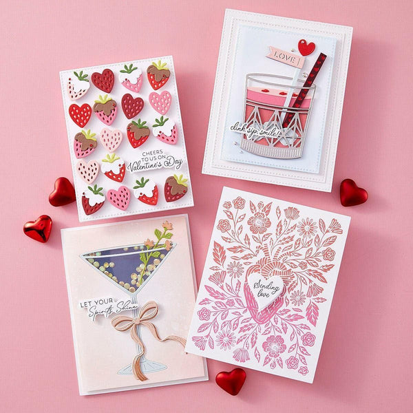 Create a perfect pairing with the Love on the Rocks and the Happy Hour collections. Whether you prefer a martini, a daquiri or an old-fashioned, these collection have the perfect glasses and garnishes to create your perfect celebratory cocktail. These celebration ready dies, BetterPress plates and more are perfect to spread the cheers!