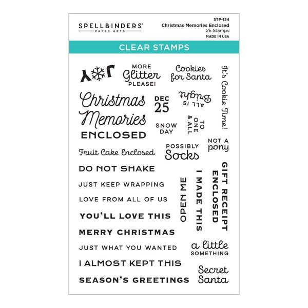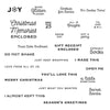 Christmas Memories Enclosed Clear Stamp Set from the Tinsel Time Collection has a set of 25 clear Photopolymer stamp sentiments. A wide variety of funny and useful phrases stamped on gift tags would bring an extra something to gift giving this holiday! The stamps work well with S3-427 Assorted Tags Dies Set. These stamps are made in the U.S.A. and work with an acrylic block. For a hot foil version of this set, look to GLP-353 Christmas Magic Glimmer Hot Foil Plate set.