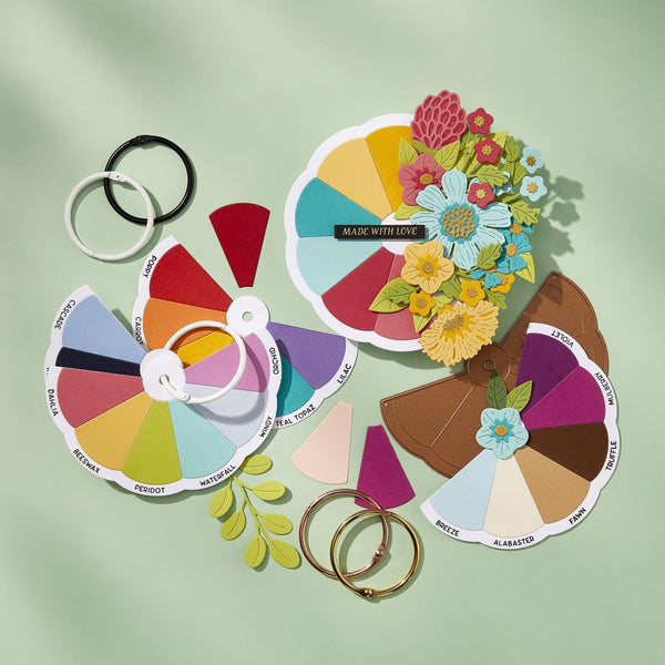 Build your own irresistible swatch deck of all 48 colors in the new ColorWheel Cardstock Collection by grabbing CSA-001 The Full 48 ColorWheel Cardstock Assortment and STP-251 Color Swatch Names Clear Stamp Set. Add in SCSE-014 Book Rings to keep your swatches together and organized.