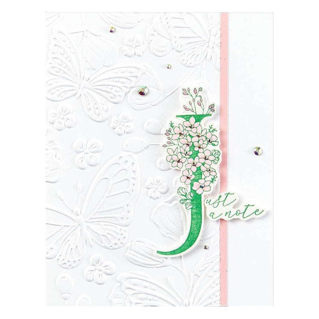 BetterPress Floral Alphabet on its own or use with the sentiment. Center the letter and sentiment on an A2-size (4.25 x 5.5-inch) card base for a lovely focal point design. Refer to images for placement recommendation.
