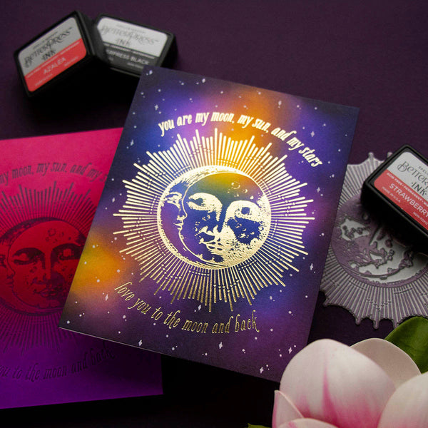 Sun & The Moon - BetterPress Plate of the Month - Released December 2023 to our BetterPress Plate the Month Club creates a beautiful celestial centerpiece. Use to create cards, décor, gift card holder, gifts, and more!