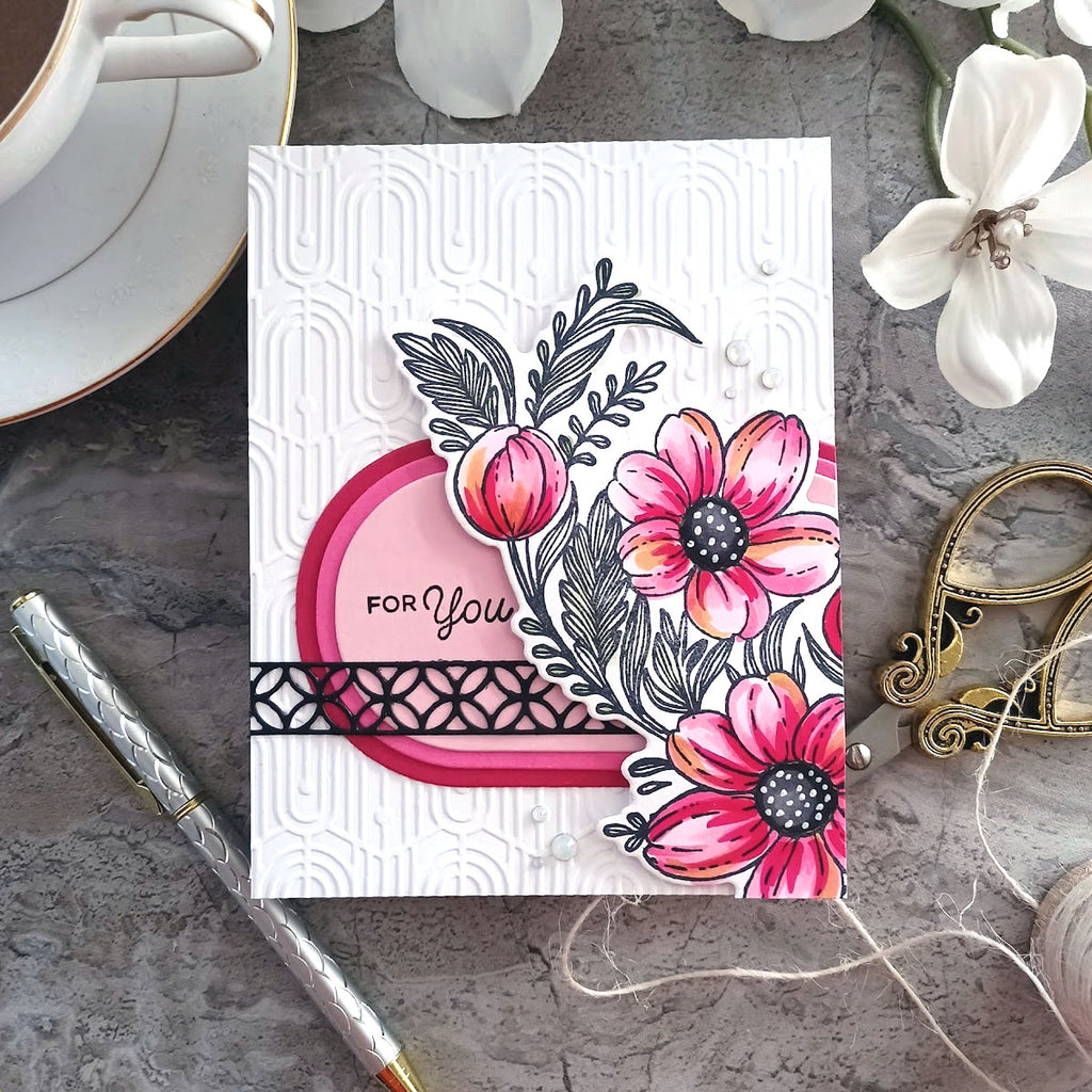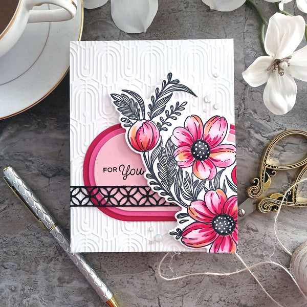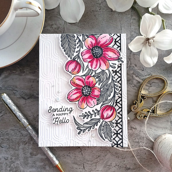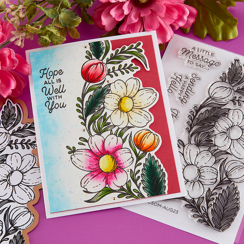 Happy Hello Floral Die Set - 7-Piece Set coordinates with the Clear Stamp of the month released August 2023 to our New Clear Stamp + Die of the Month Club.