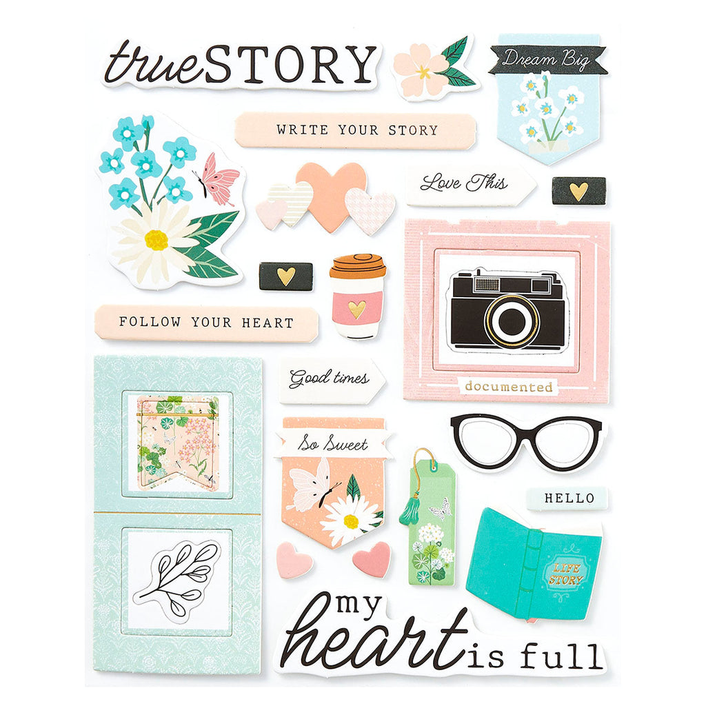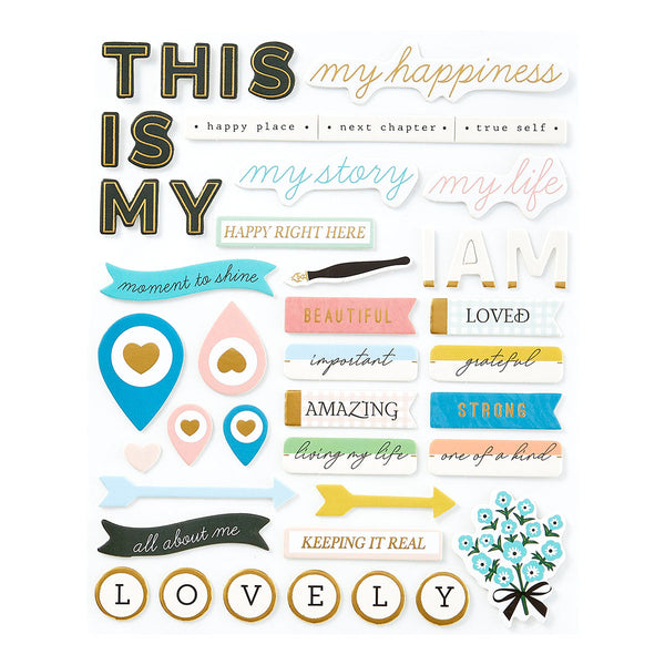 Rosie's Studio Hello It's Me! Chipboard Stickers comes in a pack of two sheets that include words on labels, sentiments, frames, floral accents and more. These sturdy chipboard pieces are amazing dimensional designs on any project!