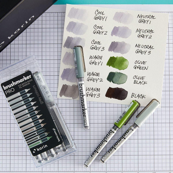 Karin Brushmarker PRO 12pc Grey Set - Your Ultimate Creative Companion! Unleash your artistic potential with the all-new Karin Brushmarker PRO 12pc Grey Set. This comprehensive set has been carefully curated to elevate your creative experience and bring your ideas to life like never before. Whether you're a professional illustrator, an enthusiastic hobbyist, or just starting on your creative journey, this set has everything you need to achieve stunning results with ease and precision.