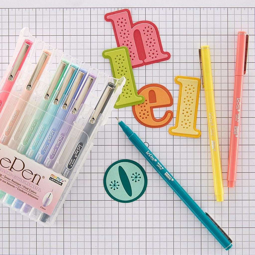 Le Pen Pastel 10 Piece Set includes smooth micro-fine plastic point pens for precision in crafting, journaling, card making, scrapbooking, and many other creative projects.