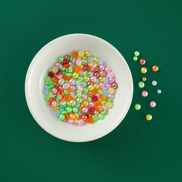 Buttons Galore & More - Tiki Bar Half Pearlz AB: Discover Flat Back Half Round Pearls with an enchanting AB finish from Buttons Galore & More. AB, or Aurora Borealis, imparts a subtle shimmer, adding an iridescent glow to your creations. These craft embellishments feature a smooth round top and a flat back, making them perfect for easy application onto various surfaces.