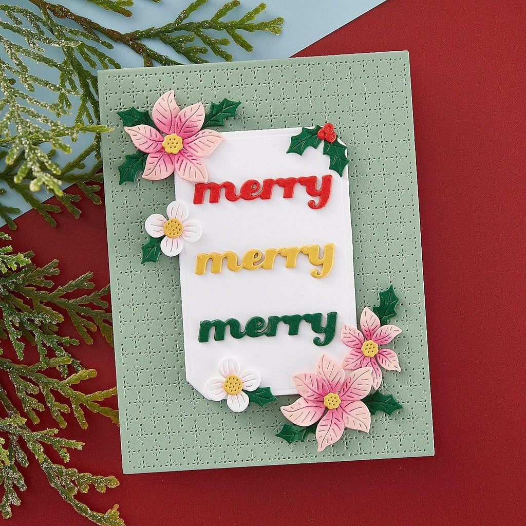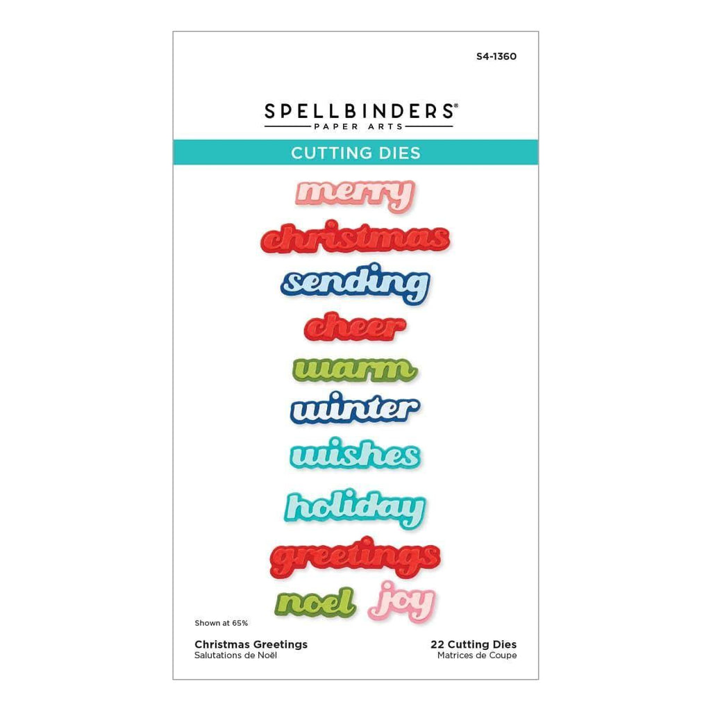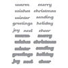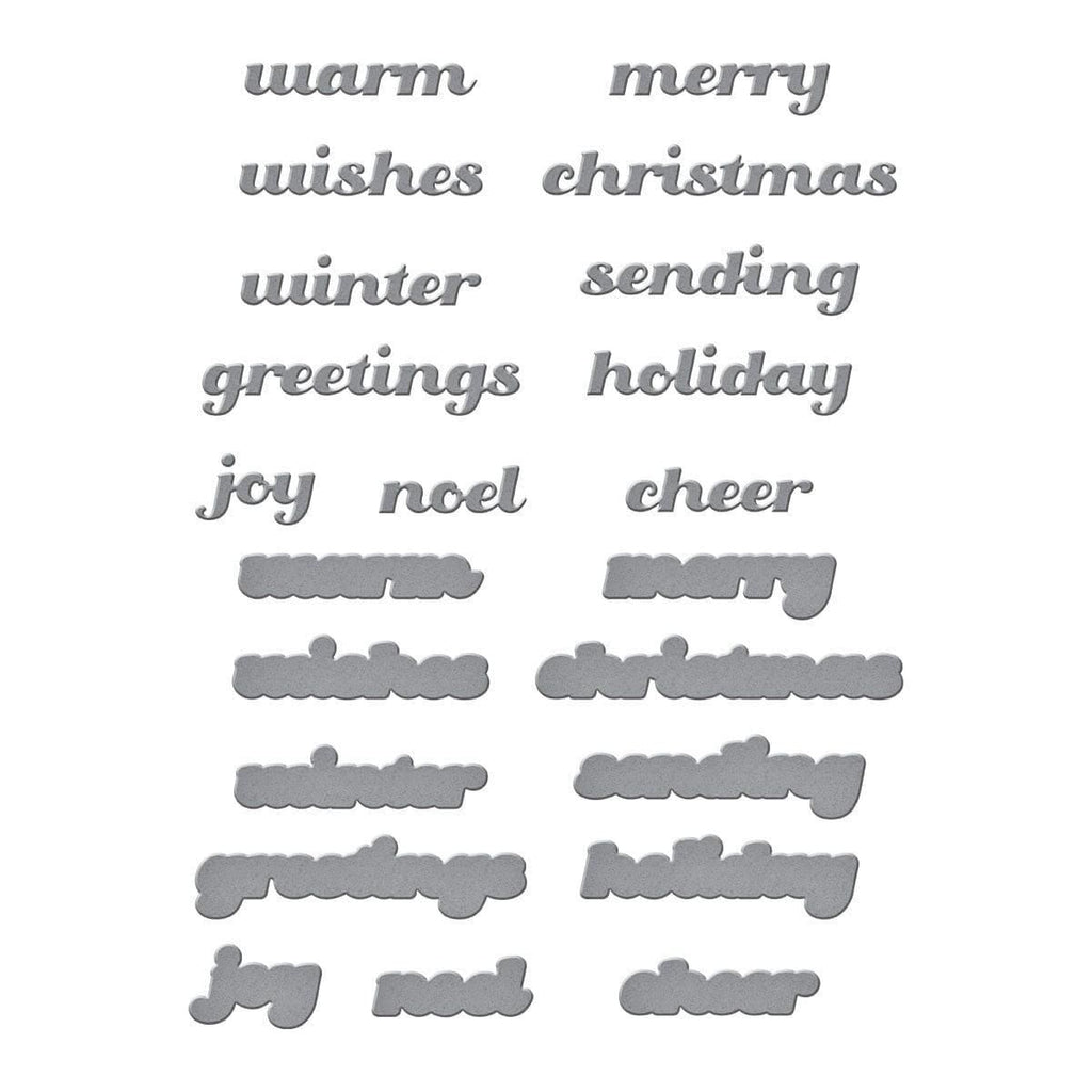 Christmas Greetings Etched Dies are part of the Home for the Holidays Collection with a set of 22 thin metal cutting dies. Each word has a die and a matching outline die to anchor the word. Create holiday greetings in this wonderful lowercase font.