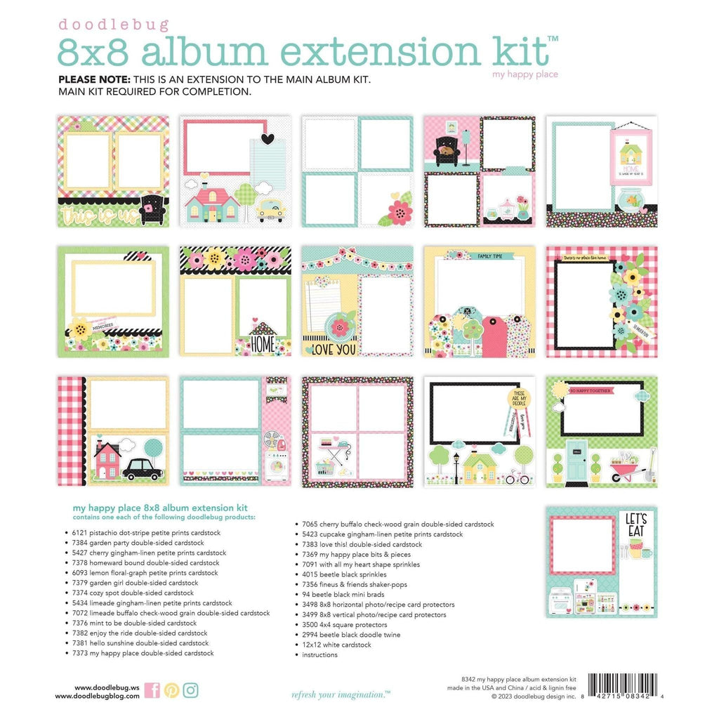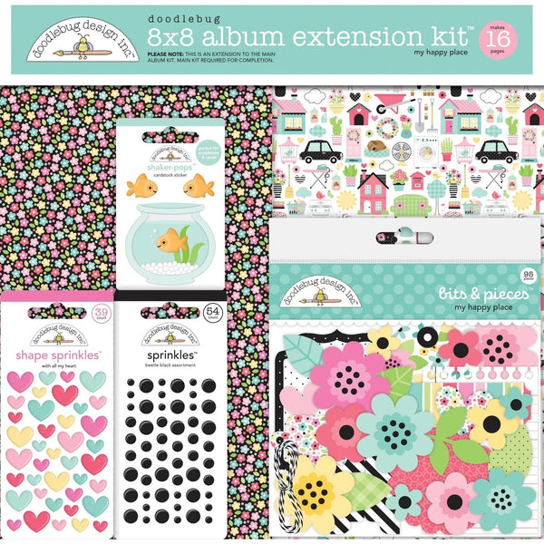 Doodlebug - My Happy Place Album Extension Kit 8x8: Add on to the My Happy Place Album kit with this wonderful extension kit. Scrapbook and design to your hearts desire with this adorable kit extension from Doodlebug!