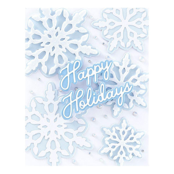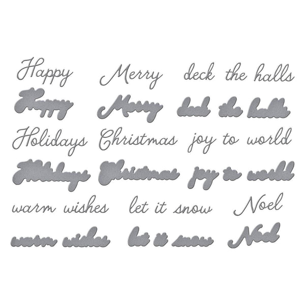 Handwritten Holiday Sentiments Etched Dies are from the Let It Snow Collection by Simon Hurley. The set has a huge option of holiday sentiments to choose from. There are 32 thin metal cutting dies, along with its outline to make it bolder! The font is a wonderful script font that goes well with your holiday crafting.