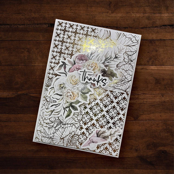 Floral Card Front Gold Foil 6x6 Paper Collection from Paper Rose – a breathtaking fusion of elegance and botanical beauty. Elevate your crafting projects with this exquisite collection featuring stunning floral patterns embellished with radiant gold foil accents. The 6x6 size provides ample space to bring your creative visions to life, whether it's scrapbooking, card-making, or other paper crafts. Each sheet in this collection is a work of art, offering a perfect blend of sophistication and charm.