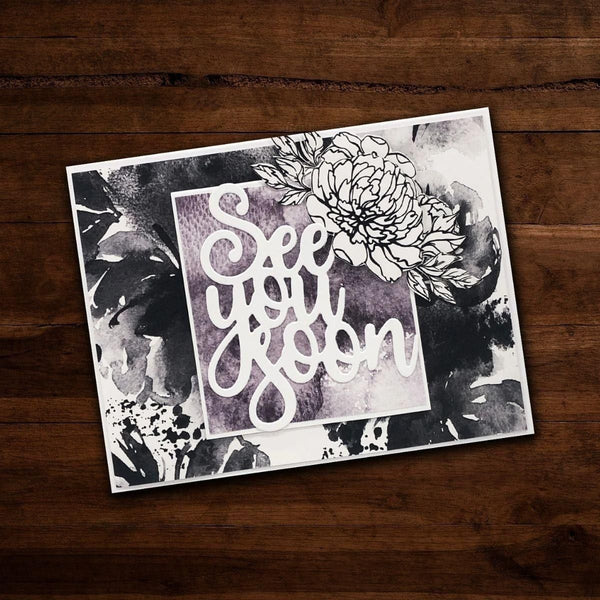 Paper Rose - See You Soon Metal Cutting Die Say goodbye with style and warmth using the Paper Rose See You Soon Metal Cutting Die. This cutting die is designed to create the phrase "See You Soon" in a beautifully scripted font, providing a charming way to add farewell messages to your paper crafting projects. Whether you're creating greeting cards, scrapbooking, or working on mixed media art, this metal cutting die is perfect for adding a heartfelt touch to your crafts.